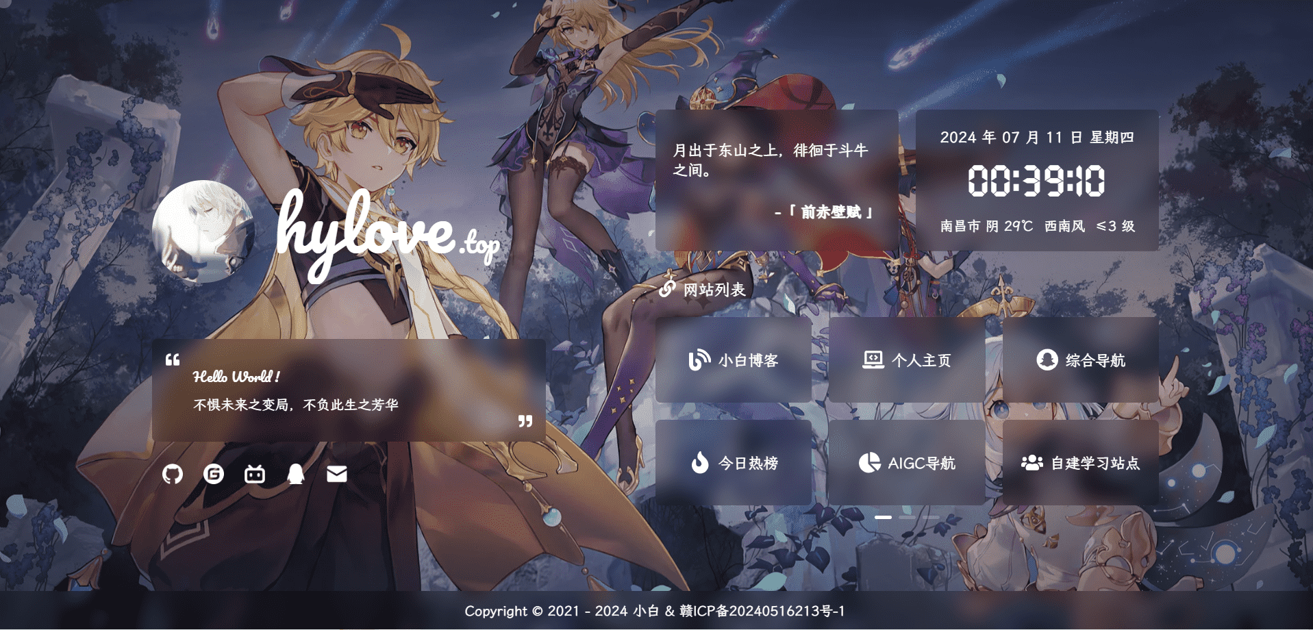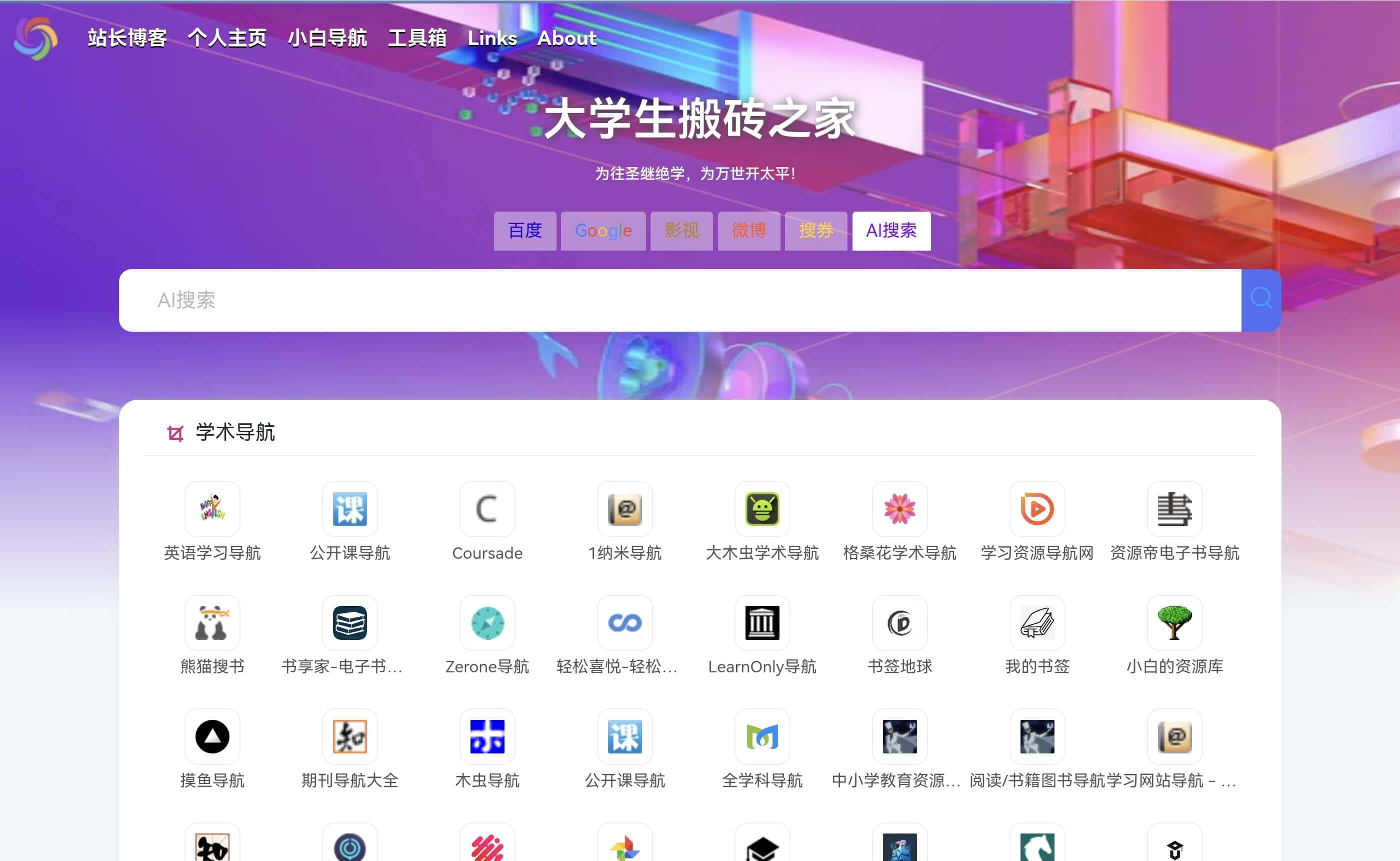 大学已经过了两年有余,由于自己决心要搭建属于自己的网站,然后自学网上的教程利用源码搭建了第一个导航站点!